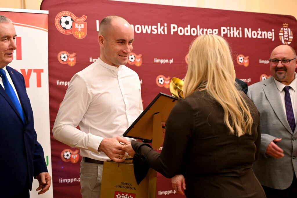 Podczas gali przedstawiciele gmin aktywnie uczestniczyli w wręczaniu nagród, honorując laureatów reprezentujących ich miejscowości i kluby. Był to wyraz realnego wsparcia dla lokalnego sportu oraz docenienia pracy zawodników, trenerów i działaczy działających na rzecz rozwoju piłki nożnej w swoich społecznościach. Dziękujemy wszystkim przedstawicielom samorządów za obecność oraz te miłe, symboliczne gesty, które naprawdę mają ogromne znaczenie dla wyróżnionych i całego środowiska piłkarskiego.