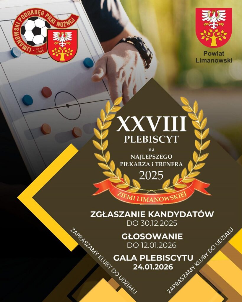 Rozpoczynamy przyjmowanie zgłoszeń kandydatur do XXVIII Plebiscytu na Najlepszego Piłkarza i Trenera Ziemi Limanowskiej w roku 2025.